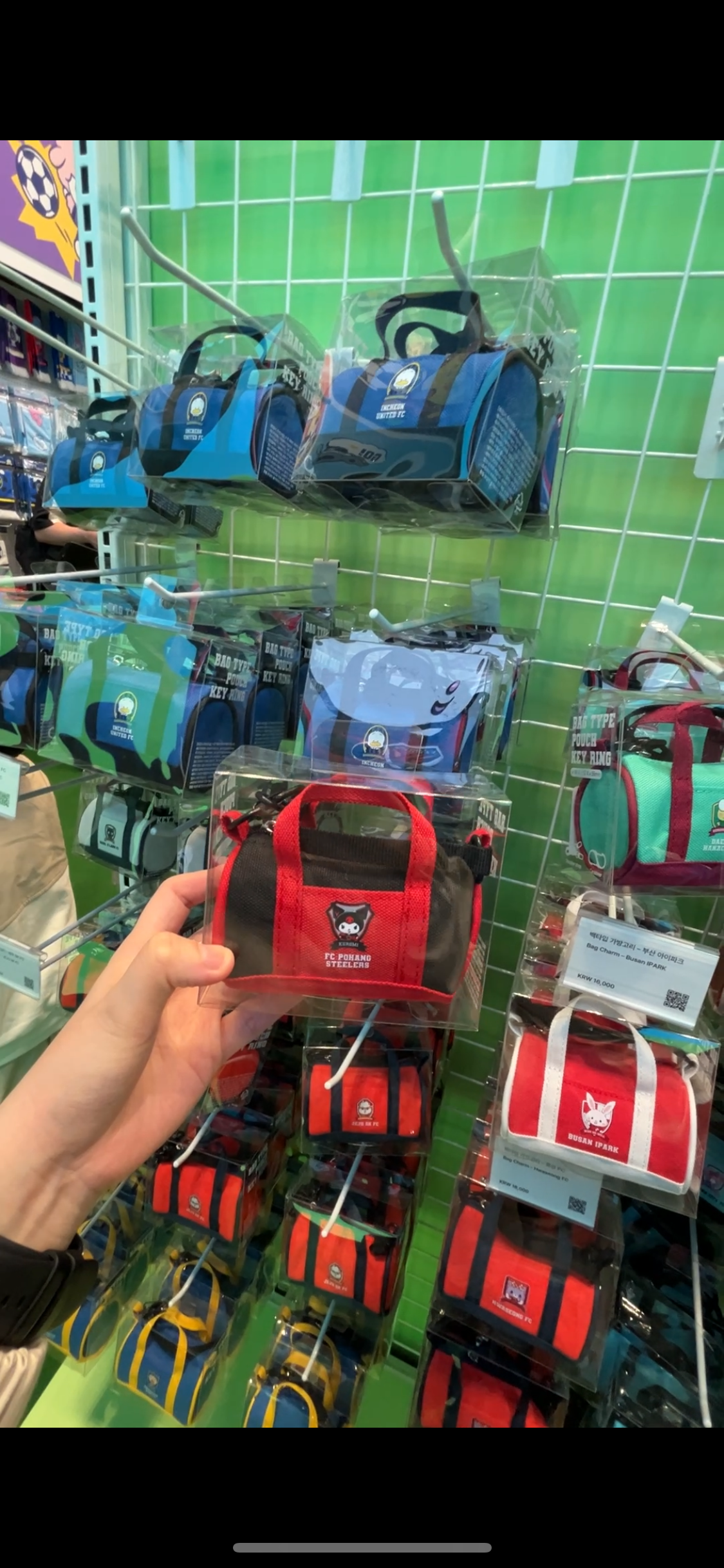 → 굿즈 리스트가 다양하고 유니폼입은 인형이나 축구라는 종목의 특성 상 상징적인 짐색, 백타입 가방고리 굿즈 등이 인상적이었음
